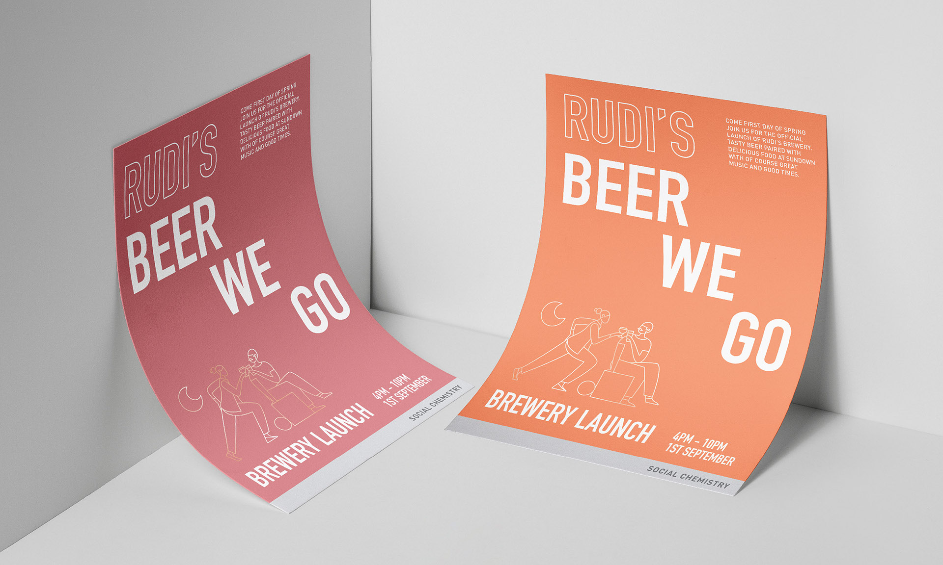 這是新西蘭的啤酒品牌Rudi's Beers包裝設計以紅、黃、橘三個暖色為主,傳達一種喝啤酒時的開心歡樂的情緒,再搭配鋁罐的金屬質地來呈現啤酒的濃郁醇厚,結合插畫的形式創造了一款獨特個性的包裝設計,在競爭激烈的精良啤酒市場中清晰的區分了他們的品牌。